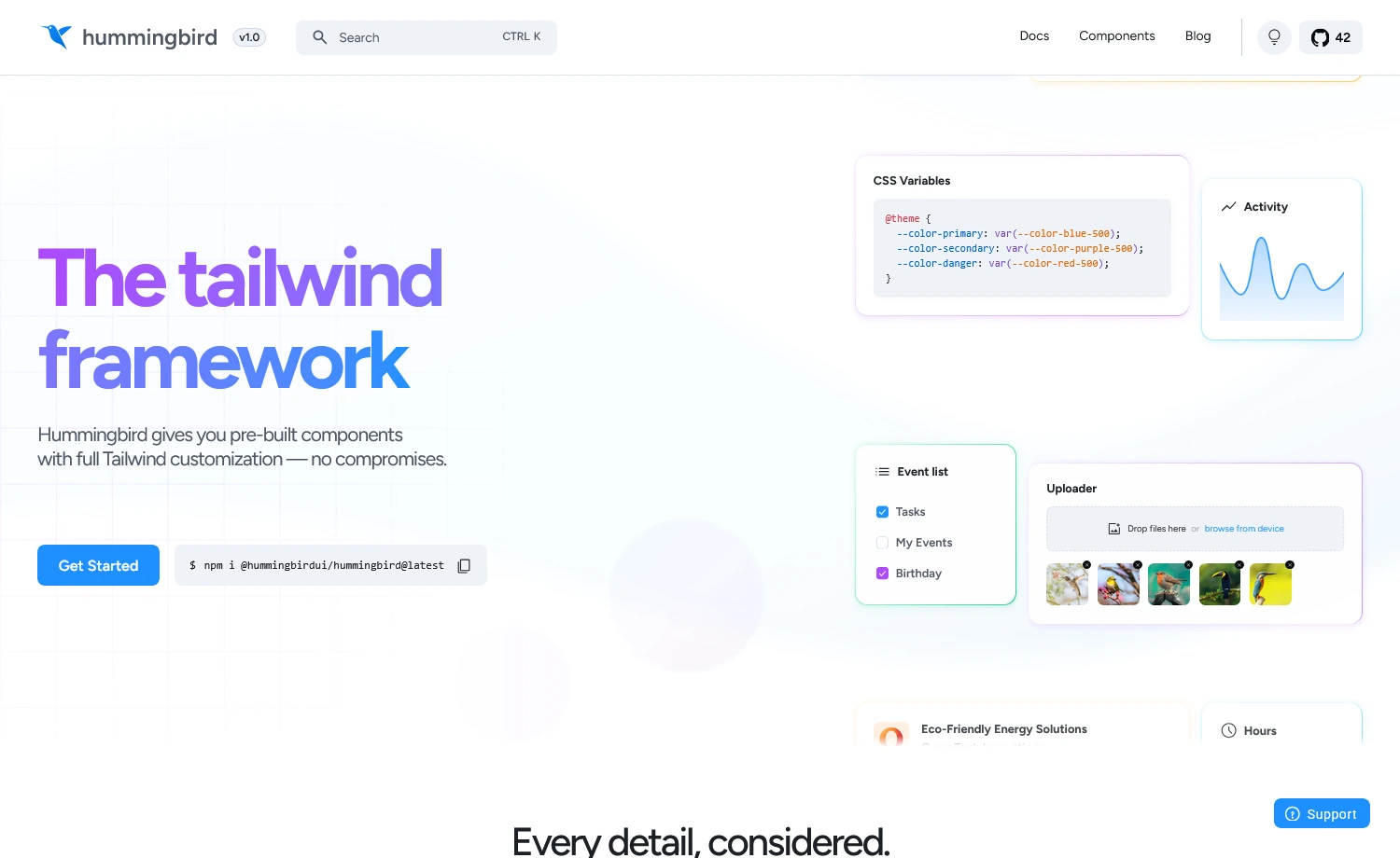 The Most Sensible Open-Source Tailwind UI Library – Hummingbird is live!